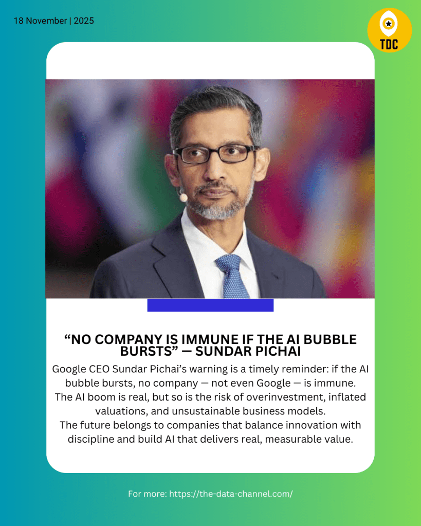 His statement has sparked global discussion. Is this just cautionary leadership, or a signal that the AI frenzy has crossed into unstable territory? Let’s unpack what Pichai meant and what it means for the broader tech ecosystem.
